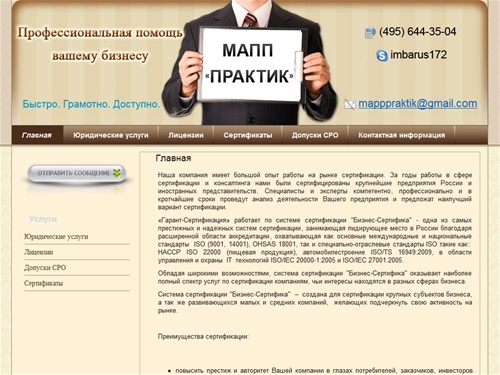 "Гарант-Сертификация" - консалтинговые услуги, сертификация, юридические услуги, лицензирование МЧС, Ростехнадзор, Минкультуры, Банкротство и многое другое !