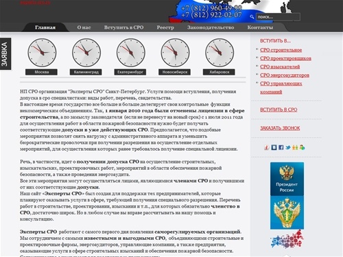 НП СРО организация "Эксперты СРО" Санкт-Петербург. Услуги помощи вступления, цены, получения допуска в сро специалистами: виды работ, перечень, свидетельства.