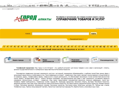 НАШ ГОРОД, СПРАВОЧНИК ТОВАРОВ И УСЛУГ. ТЕЛЕФОННЫЙ СПРАВОЧНИК АЛМАТЫ.